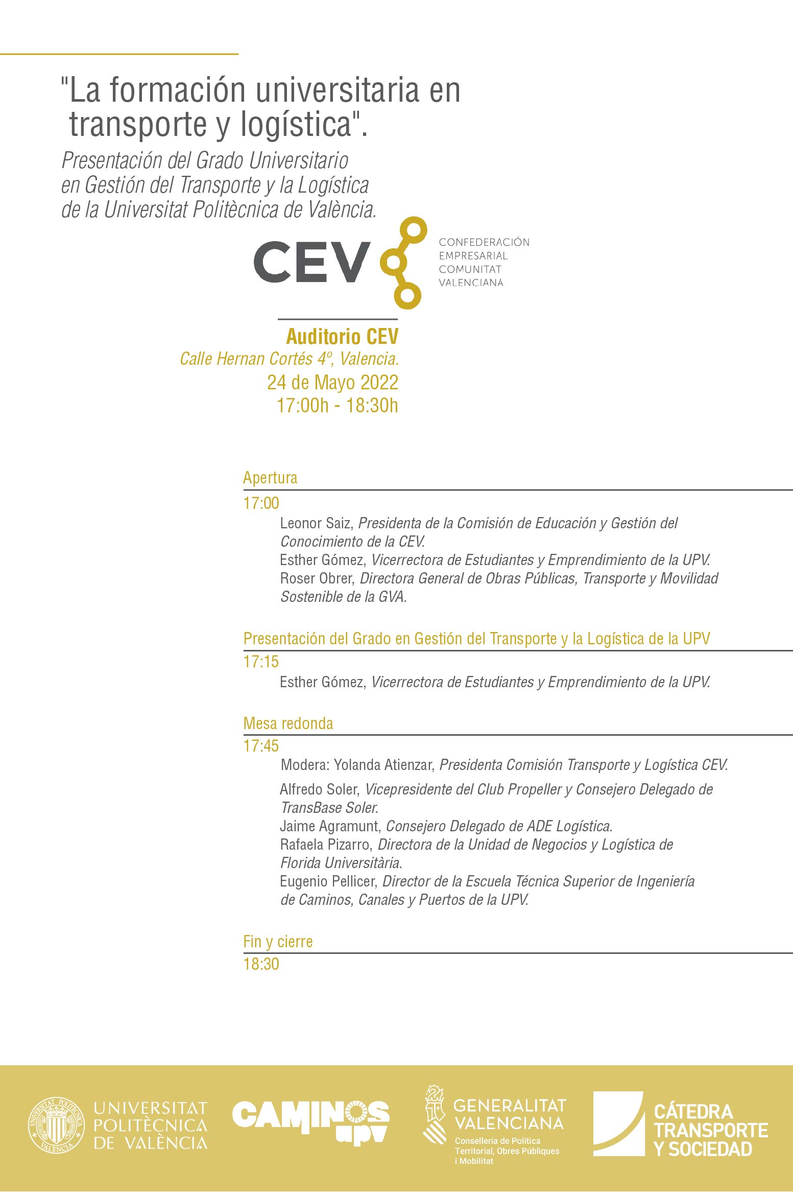 LUGAR: Auditorio CEV, Calle Hernan Cortés 4º, Valencia.
